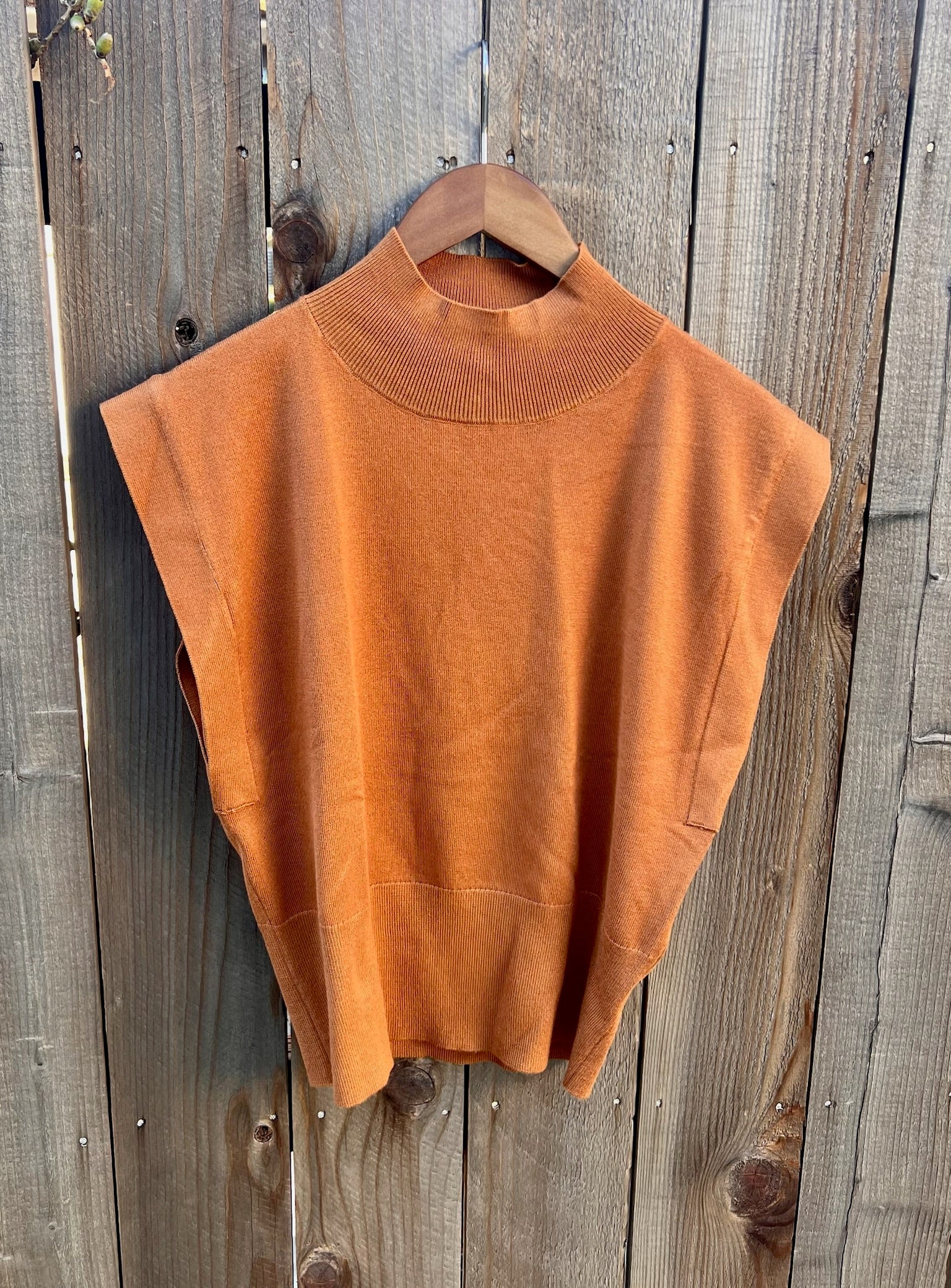 This top brings a sophistication to your everyday look. With a mock turtle neck, cap sleeves, and a unique textured design, it's the perfect blend of structure and softness. Dress it up or down it's a piece your closets been wanting.